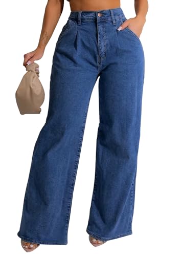 Women’s Straight Leg High Waist Baggy Denim Jeans Loose Boyfriend Casual Stretchy Jeans