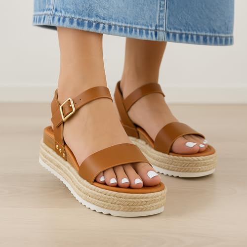 CUSHIONAIRE Melissa Espadrille Platform Sandals For Women with Adjustable Ankle Strap and Memory Foam Insole-Comfortable Womens Sandals for Summer