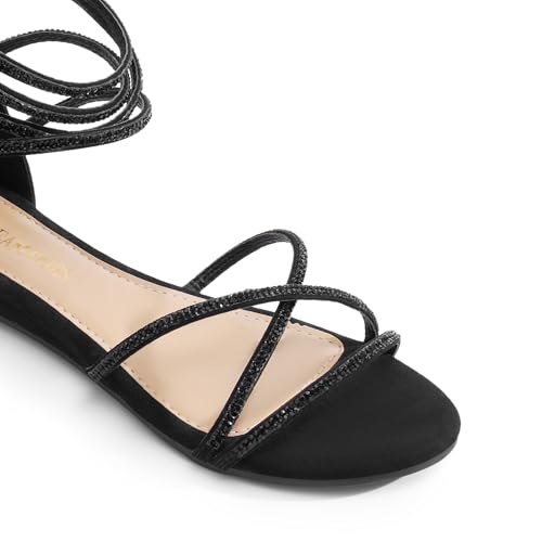 DREAM PAIRS Women’s Ankle Strap Flat Sandals Summer Dressy Strappy Gladiator Rhinestones Sandals