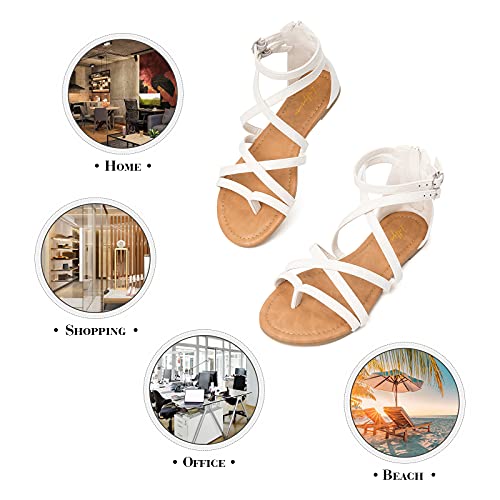 Luffymomo Women’s Gladiator Strap Sandals Flat Fisherman Thong Cross Strappy Sandals